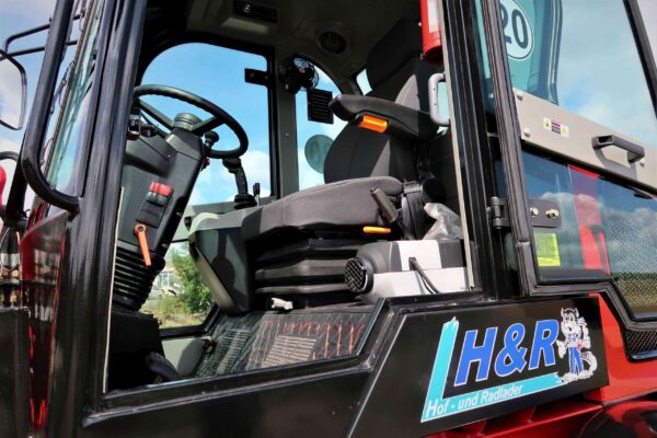 Der H&R Radlader bietet eine großzügige Kabine mit einem verstellbaren Sitz, Dieselstandheizung und Rückfahrkamera sowie Heizung und Lüftung. So können Sie auch längere Einsätze bequem und sicher durchführen.